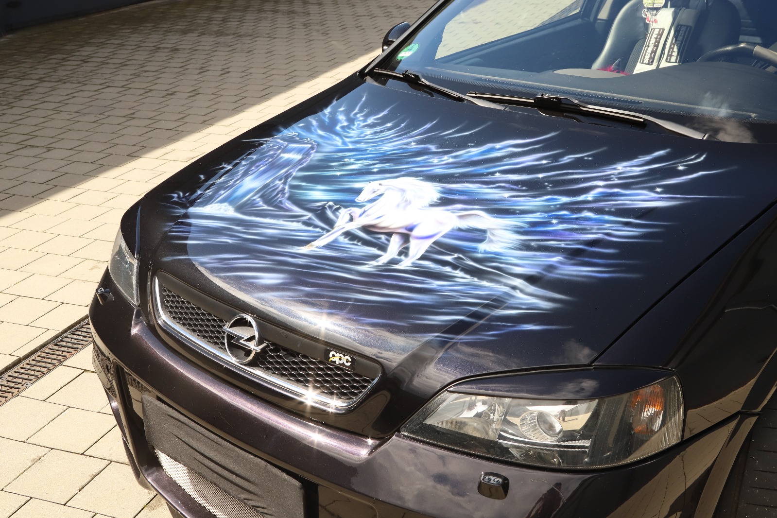 Vollfolierung, Brock Alufelgen, Schrothgurte, Airbrush im Innenraum